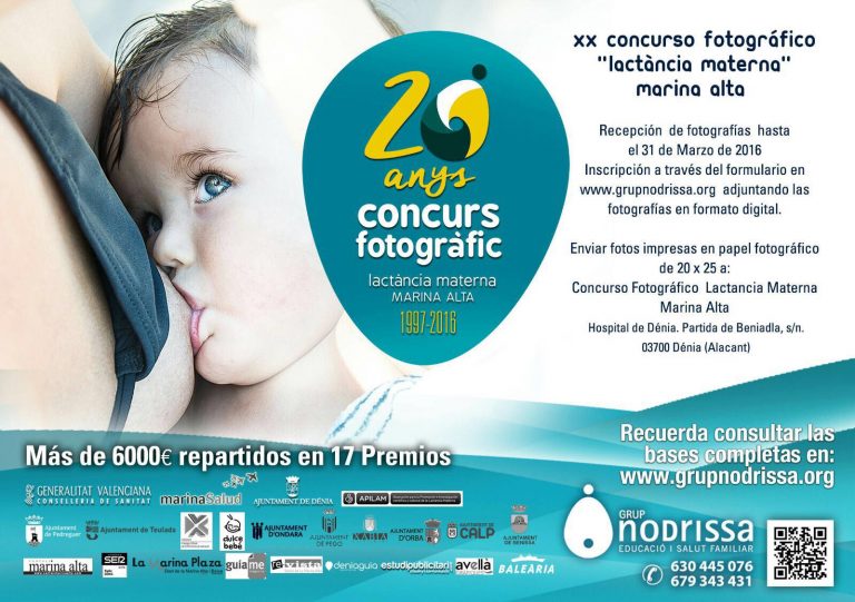 El concurso fotográfico “Lactancia Materna Marina Alta”, que este año celebra su 20 edición, consta de 17 premios patrocinados por asociaciones, ayuntamientos, empresas, grupos de apoyo y la Generalitat Valenciana.