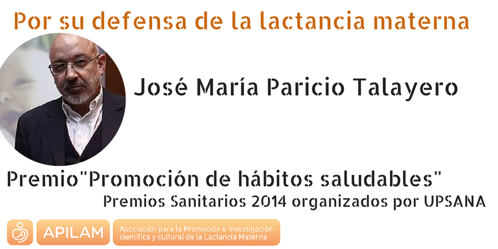 El presidente y pediatra de APILAM, José María Paricio Talayero, ha sido premiado por los Colegios Profesionales Sanitarios de la provincia de Alicante, constituidos en la Unión Profesional Sanitaria (UPSANA), con el premio “Promoción de hábitos saludables” por su defensa de la lactancia materna.