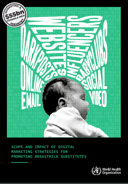 El informe de la OMS «Scope and impact of digital marketing strategies for promoting breast-milk substitutes” (Alcance e impacto de las estrategias de marketing digital para la promoción de los sucedáneos de la leche materna) detalla las alarmantes prácticas de comercialización abusivas empleadas por la industria de sucedáneos de leche materna, un sector valorado en 55.000 millones de dólares.