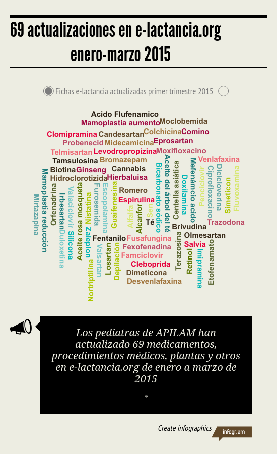 Durante el primer trimestre de 2015 los pediatras de APILAM han actualizado y revisado la compatibilidad de la lactancia materna con 69 medicamentos, plantas, procedimientos médicos y otros productos.